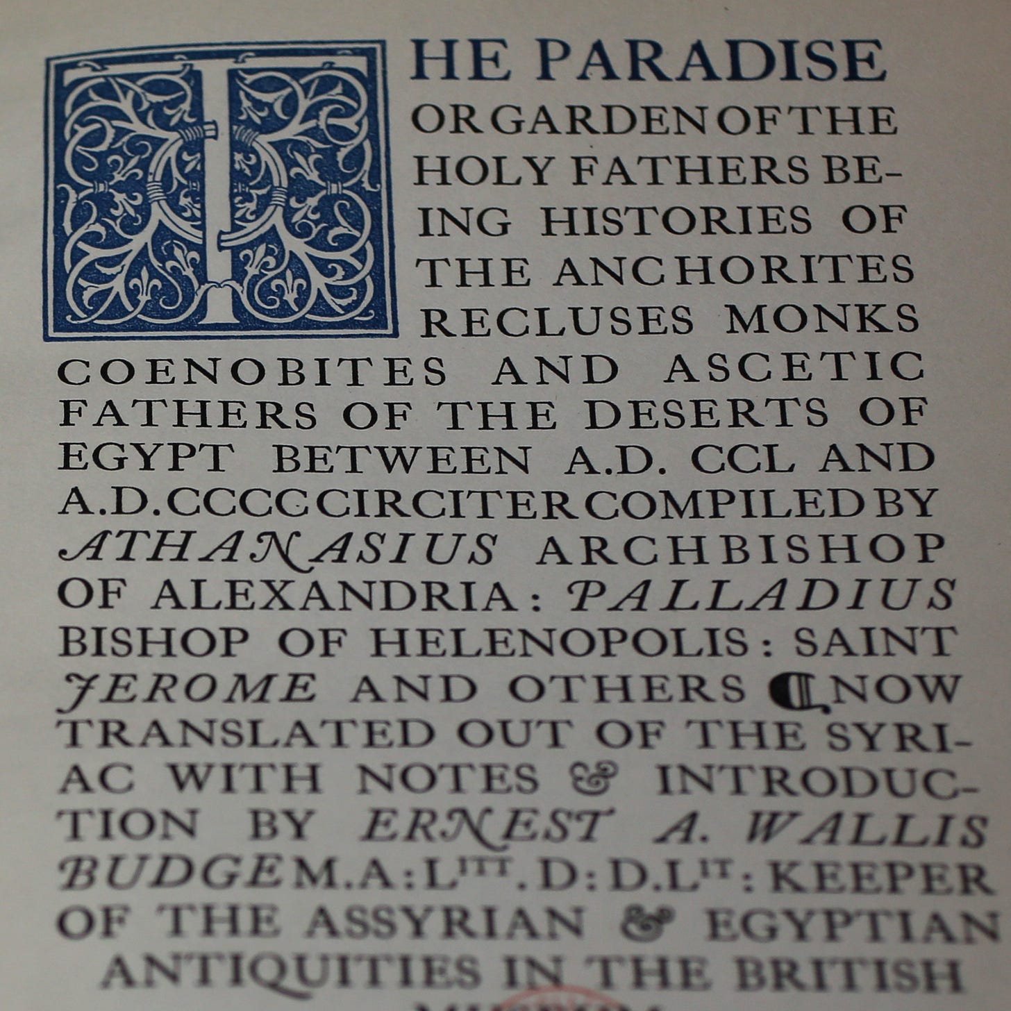 from The Sayings of the Holy Fathers in The Paradise or Garden of the Holy Fathers vol. II translated by E.A. Wallis Budge.